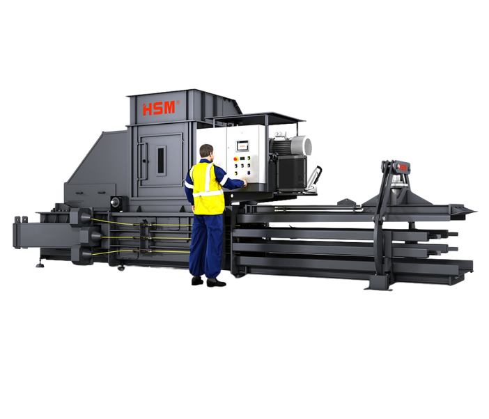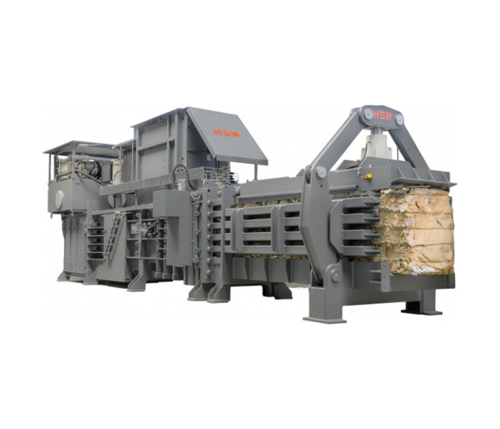 VK balenpersen van HSM voor het volautomatisch verwerken van grote hoeveelheden plastic, plastic folie, papier, karton, PET-flessen, HDPE-flacons, RDF, afval en overige recyclebare materialen tot wel 1250 Kg zware balen.